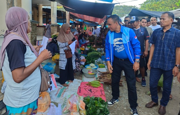 Dalam kegiatan yang berlangsung hangat tersebut, Anwar Hafid berjalan menyusuri los demi los pasar, menyalami dan berbincang dengan satu per satu pedagang yang ditemuinya.