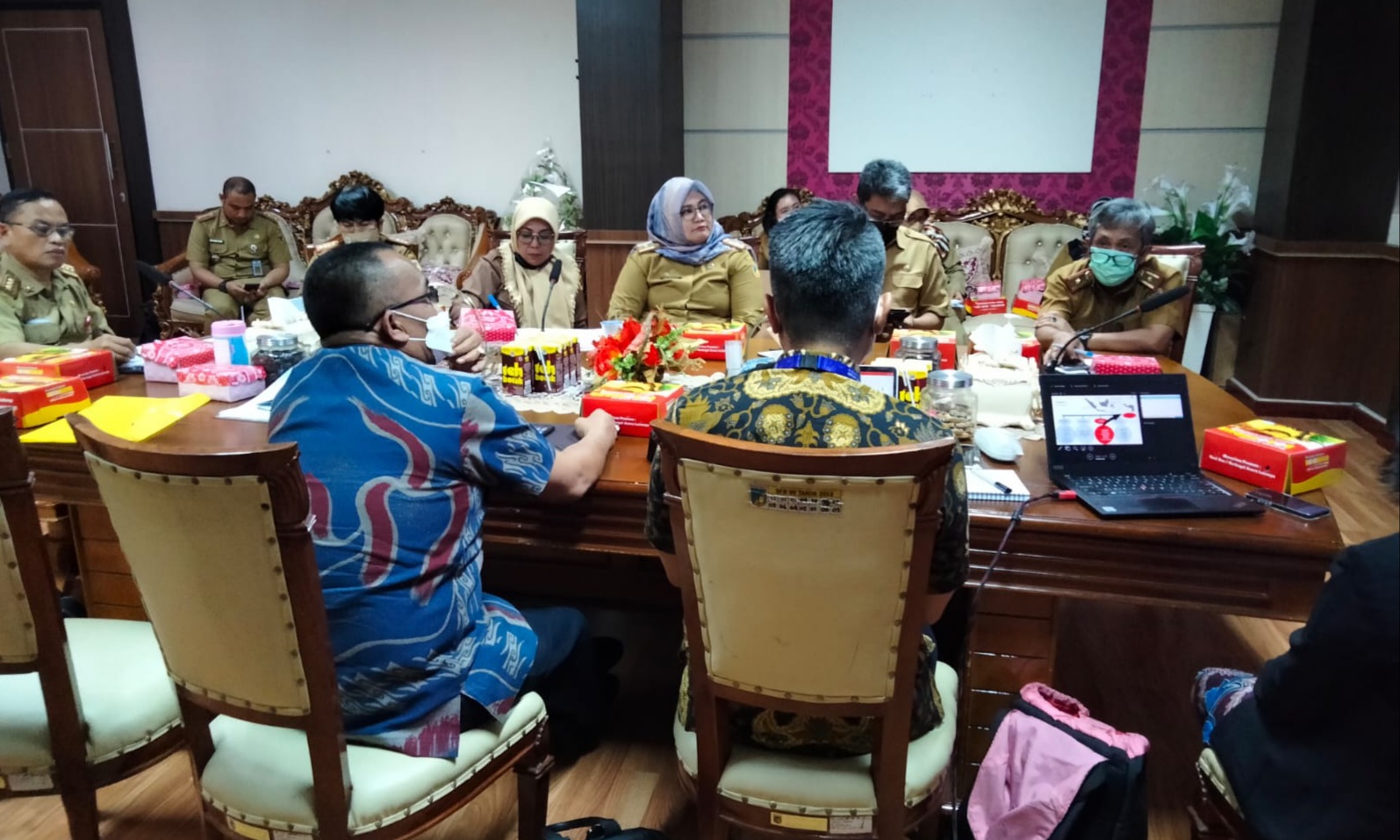 gNews.co.id – Pj Sekertaris Daerah Provinsi (Sekdaprov) Sulawesi Tengah (Sulteng), Rudi Dewanto di dampingi Kepala Bappeda, Christina Shandra Tobondo, Kepala Dinas Sosial, Suti Hasbiah N. Zaenong, Dosen Untad Prof. Patta Tope, Pejabat Biro Administrasi Pimpinan, Rifal, serta pejabat terkait lain menerima kunjungan National Project Manager United Nations Development Programme (UNDP) Saputra Liadi beserta tim bertempat di ruang kerja Sekertaris Daerah Provinsi (Sekdaprov) Sulawesi Tengah, Selasa (13/92022).