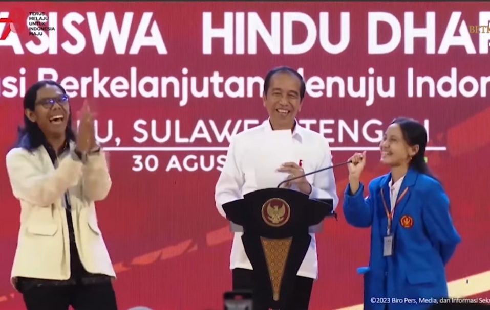 Momen itu ketika Presiden Joko Widodo (Jokowi) menghadiri kegiatan Kongres KMHDI di Kota Palu, Sulawesi Tengah (Sulteng), Rabu (30/8/2023).