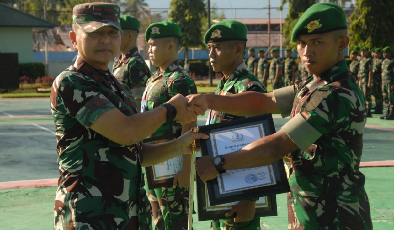 gNews.co.id – Danrem 132 Tadulako, Brigjen TNI Toto Nurwanto menyerahkan piagam penghargaan kepada anggota Yonif 714/SM yang berprestasi, Selasa (30/8/2022).