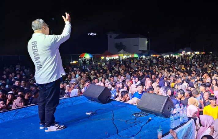 Bakal Calon (Balon) Gubernur Sulawesi Tengah (Sulteng), Ahmad Ali (AA) hadir dalam pembukaan Turnamen terbuka Bola Voli Ahmad Ali Cup di papangan Desa Sendana, Kecamatan Kasimbar, Kabupaten Parigi Moutong, Senin (19/8/2024) malam.