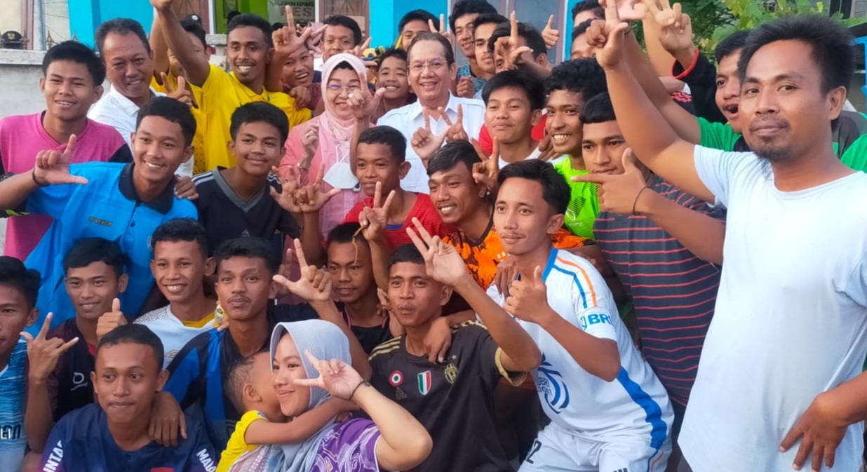 Bahkan para Pemuda Karang Taruna Kecamatan Tomini binaan PAC Gerindra tak mau ketinggalan menyambut serta foto bersama dengan Longki dan Zalzulmida.