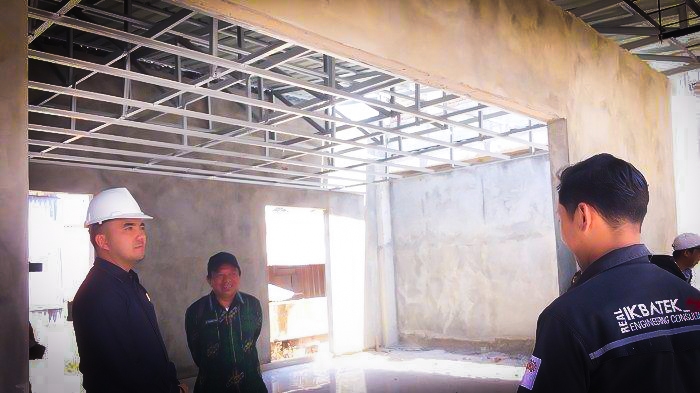 Didampingi pelaksana proyek Anggota Komisi C DPRD Kota Palu berkeliling gedung untuk memantau progres pembangunan Kantor Dinas Sosial Palu.