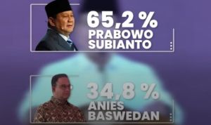 Adapun, saat dihadapkan head to head dengan Anies, Prabowo unggul dengan selisih angka yang lebih besar. Elektabilitas Prabowo mencapai 65,2 persen sementara Anies 34,8 persen.