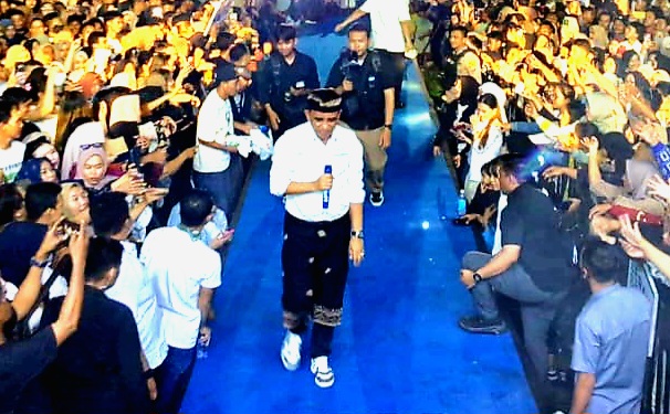 Anwar Hafid menyampaikan karirnya menjabat kades di hadapan ribuan warga dalam Deklarasi dan Temu Masyarakat di Tirta Sari, Kecamatan Toili, Kabupaten Banggai, Selasa (30/7/2024) malam.