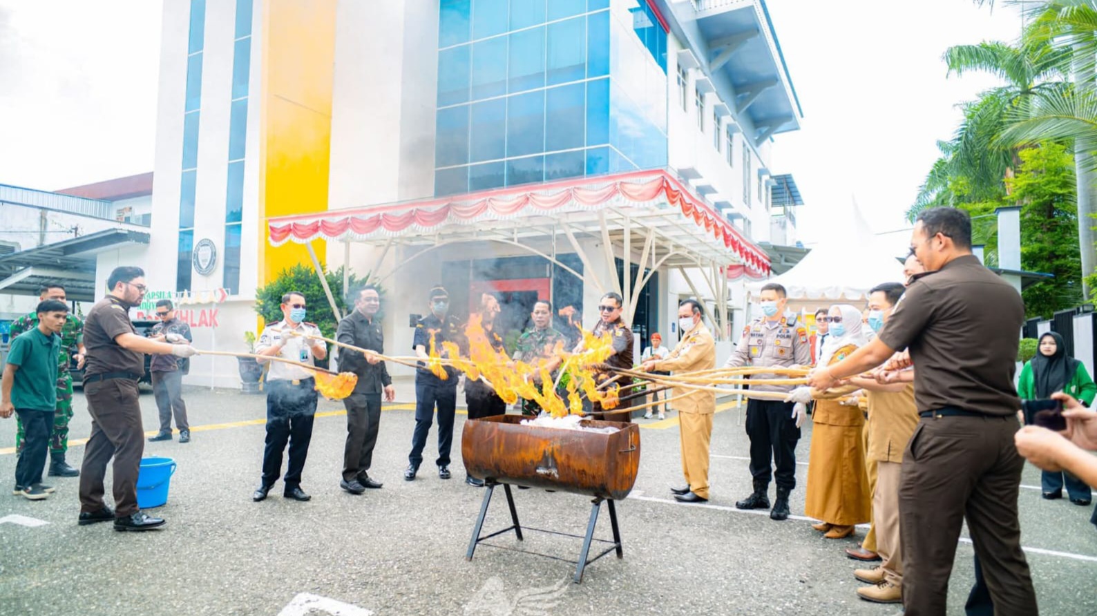 Pemusnahan dilakukan di halaman Kantor Kejari Banggai dan disaksikan unsur Forkopimda serta insan pers.