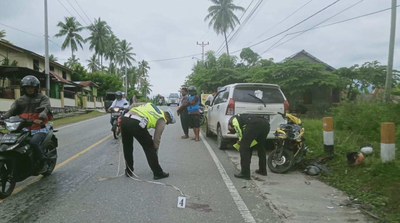 Adapun kronologis kejadiannya, jelas KBO Lantas, seorang pengemudi Mobil Toyota New Avanza Nopol DM 1057 FC melaju dari arah Selatan menuju Utara.