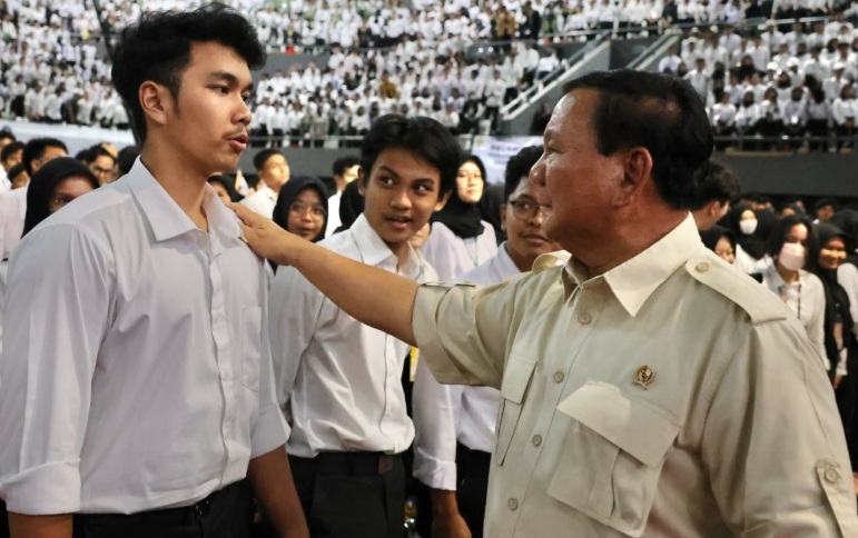 Selain memberi motivasi kepada para mahasiswa baru, Prabowo yang hadir mengenakan baju safari juga memberikan pembekalan terkait sejumlah isu terkini, termasuk hilirisasi dan perjuangan pahlawan di masa lalu.