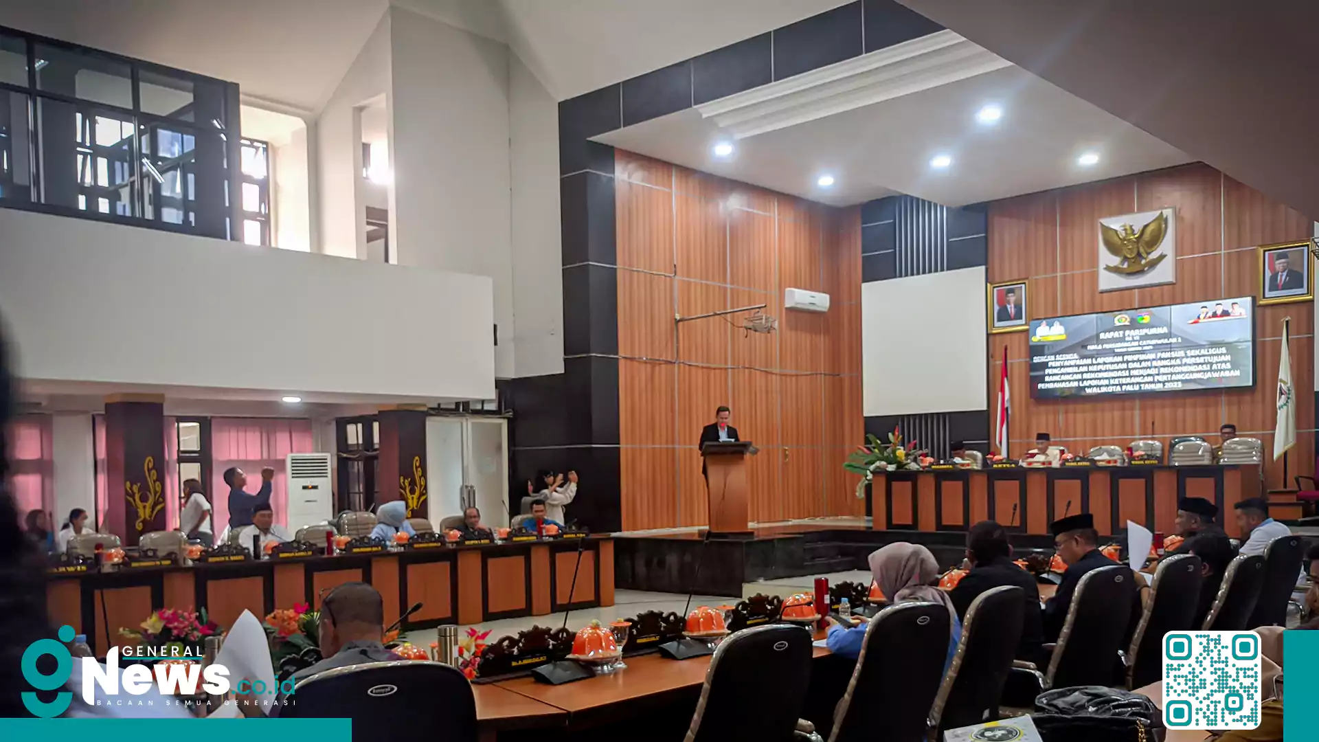 PALU – DPRD Kota Palu, Menggelar rapat Paripurna, dengan agenda penyampaian laporan pimpinan Pansus sekaligus pengambilan keputusan terkait persetujuan rancangan rekomendasi menjadi rekomendasi pembahasan LKPJ Walikota Palu tahun 2023, Senin (22/4/2024) di ruang utama kantor DPRD Palu.