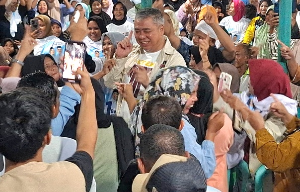 Ahmad Ali baru saja tiba di lokasi kampanye, namun antusiasme warga terutama ibu-ibu langsung terlihat.