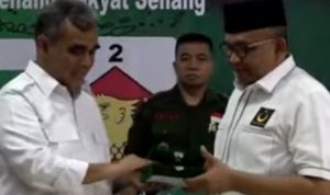 “Bapak! Bapak Prabowo!” seru para Santri menyambut kedatangan Prabowo seraya bersalaman.