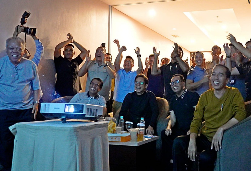 Presiden Jokowi nonton bareng laga tersebut bersama sejumlah menteri dan perangkat melekat di hotel tempatnya bermalam di Kota Palu, Provinsi Sulawesi Tengah, pada Selasa malam, 26 Maret 2024.