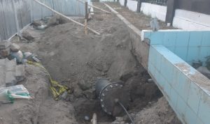 Kemudian, ada pula pondasi pagar rumah dan saluran warga yang rusak terkena titik galian pipa PT PP.