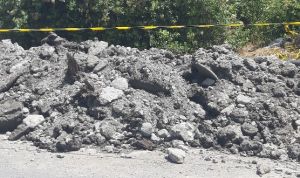Kualitas material timbunan bahu jalan Karanja Lembah pada proyek pemasangan pipa dari PT Jasuka-Tirta, KSO diduga tidak sesuai ketentuan peraturan.