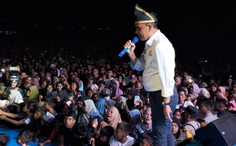 Acara di Pantai Indah Salakan masa tak berujung. Bagaimana tidak, dari atas panggung lantaran banyaknya massa membludak, sehingga tidak kelihatan ujungnya di mana.