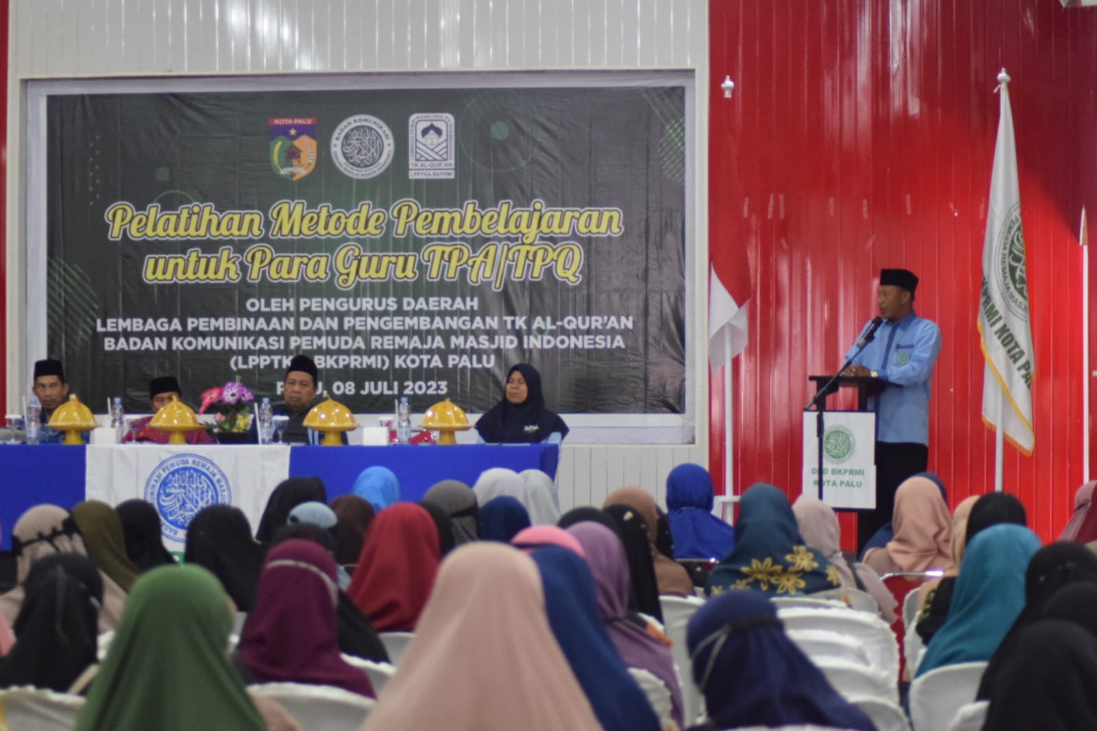 Ketua Umum DPD BKPRMI Kota Palu, Dawud Asroh dalam laporannya menyampaikan bahwa pelatihan ini sebagai ajang sharing bersama para guru TPA terkait dengan metode pembelajaran Al-Qur’an melalui kurikulum yang ada.