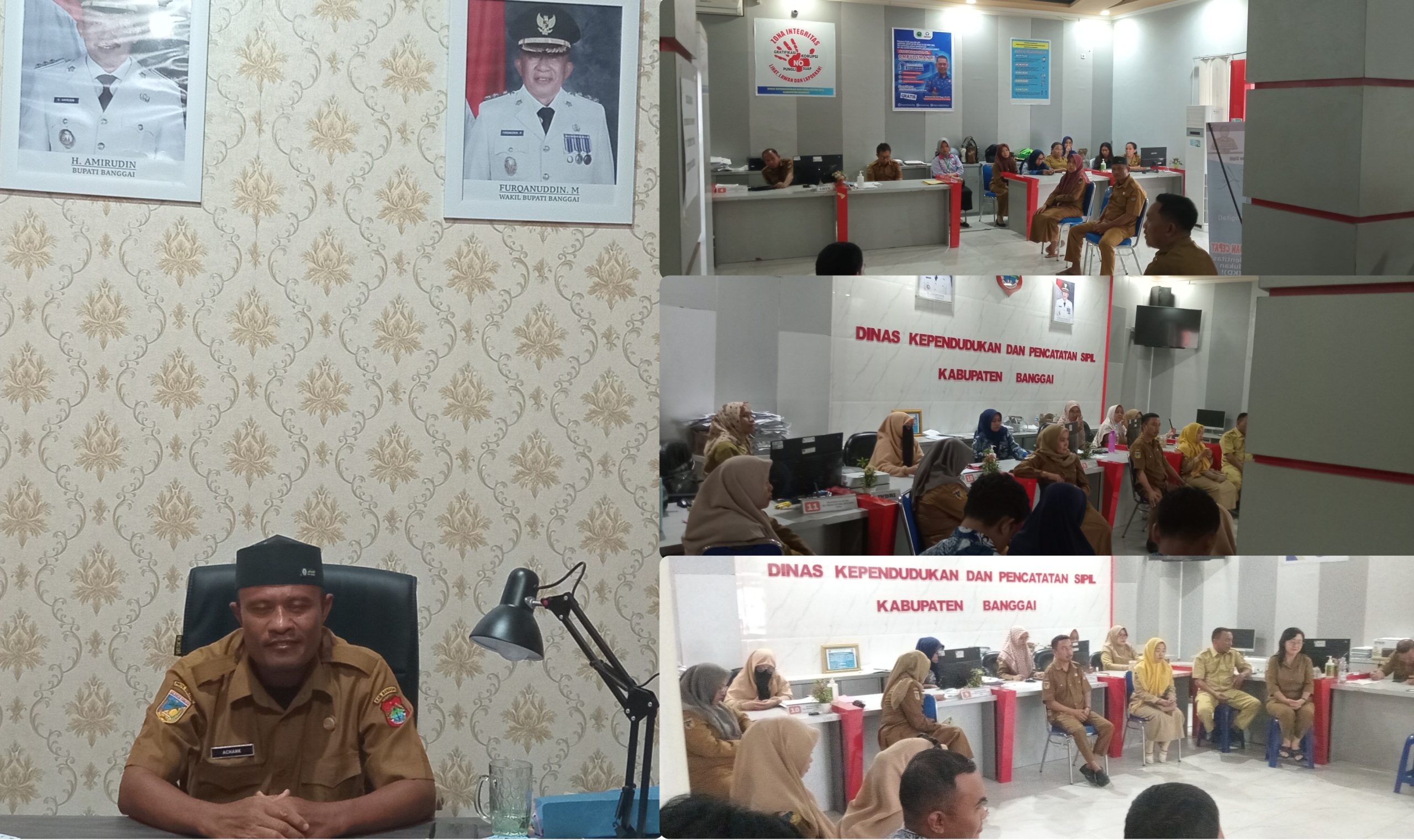 gNews.co.id,- Dinas Kependudukan dan Pencatatan Sipil (Dukcapil) Kabupaten Banggai menggelar rapat sosialisasi terkait peningkatan pelayanan publik di tengah kebijakan efisiensi anggaran dan penerapan Work From Home (WFH), Senin (20/05/2026), di ruang pelayanan kantor Dukcapil.