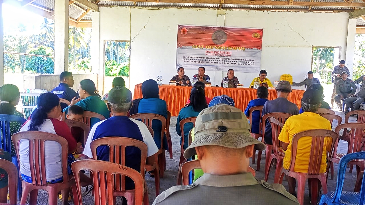 gNews.co.id – Satuan tugas (Satgas) III Preventif Ops Madago Raya melakukan Hipnoterapi ke sejumlah warga Desa Kawende, Kecamatan Poso Pesisir Utara, Kabupaten Poso.